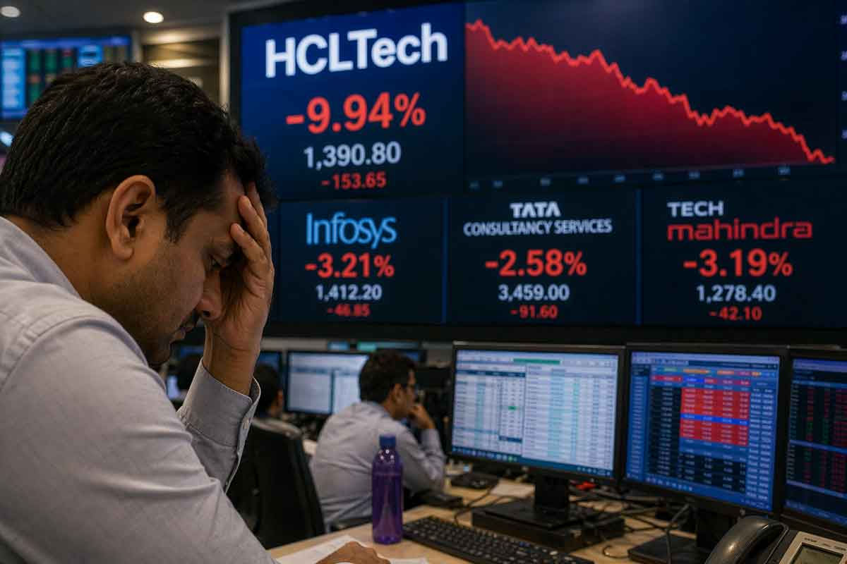 On April 22, 2026, HCL Technologies posted its Q4 FY26 results and within hours, its stock had crashed nearly 10% on the NSE, hitting a low of ₹1,301 per share. That single fall was enough to drag the Nifty IT index down by 1,228 points, or 3.87%, pulling Infosys, Tech Mahindra, TCS, and Persistent Systems along with it. If you hold an IT mutual fund or any of these stocks, today was painful. Here is the full picture what happened, why it happened, and what retail investors should actually do with this information.